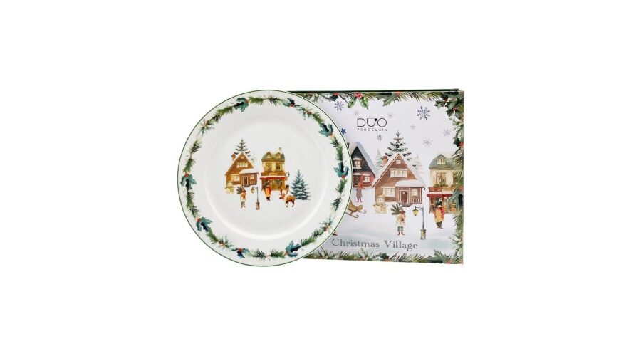 Porceláncsésze+alj, 270ml, 2 személyes, dobozban, Christmas Village