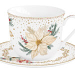 Porcelán reggelizőcsésze+alj 370ml, dobozban, White Elegance