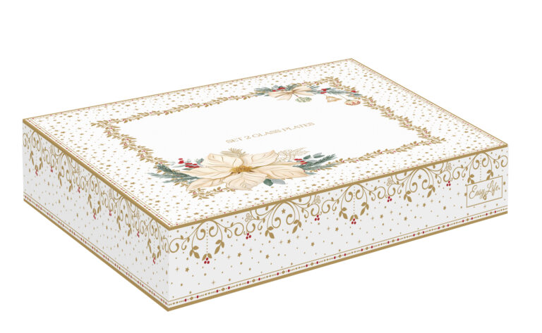 Üvegtálszett 2 db-os, 18/21cm, dobozban, arany színű virág, White Elegance