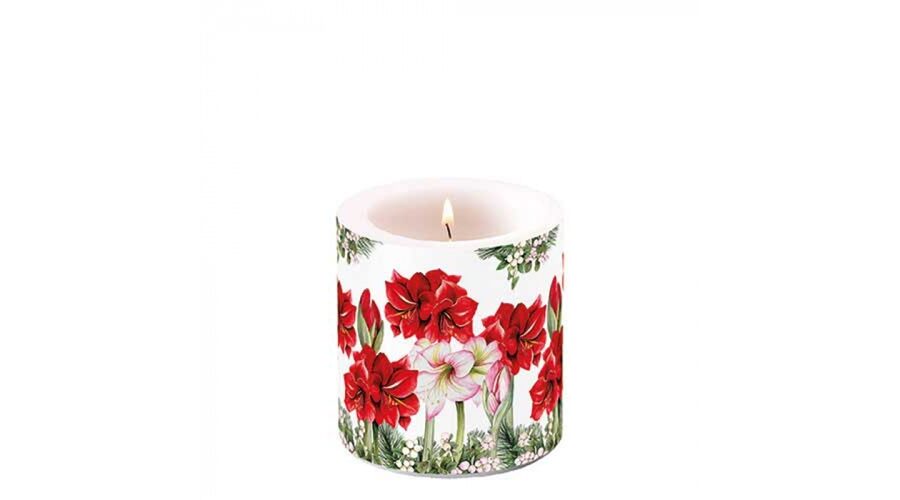 Átvilágítós gyertya Blooming amaryllis white 8×7,5cm