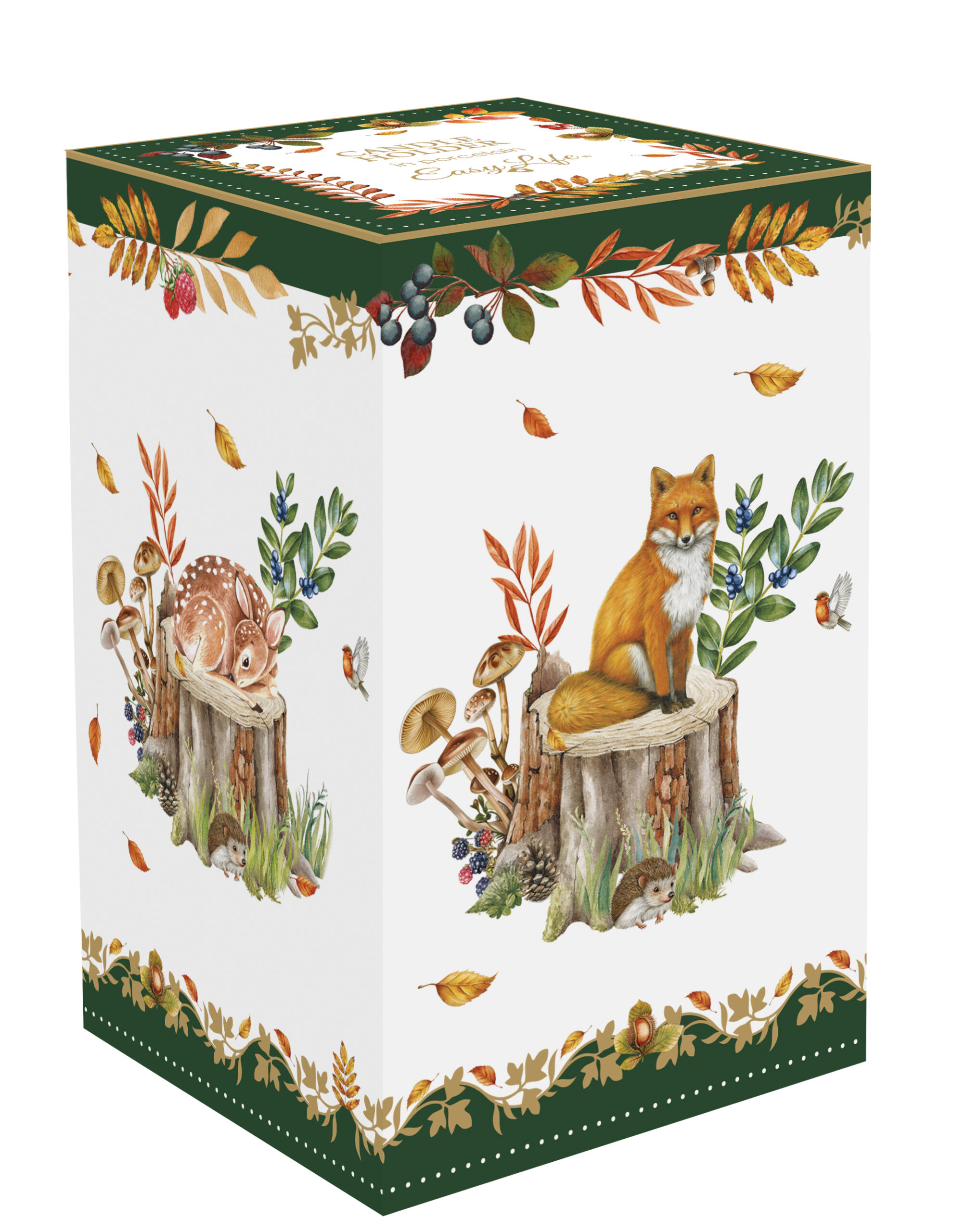 Gyertya porcelántálkában fedővel, 8,5x12cm, dobozban, Forest Dream