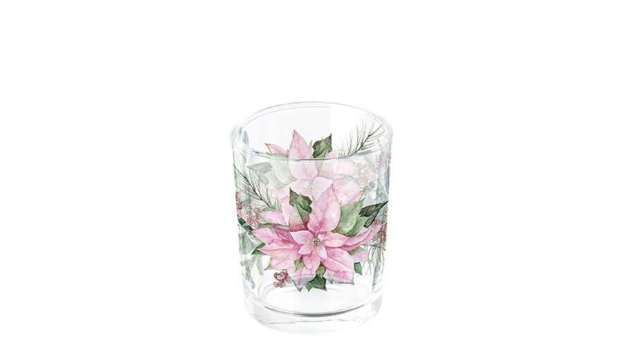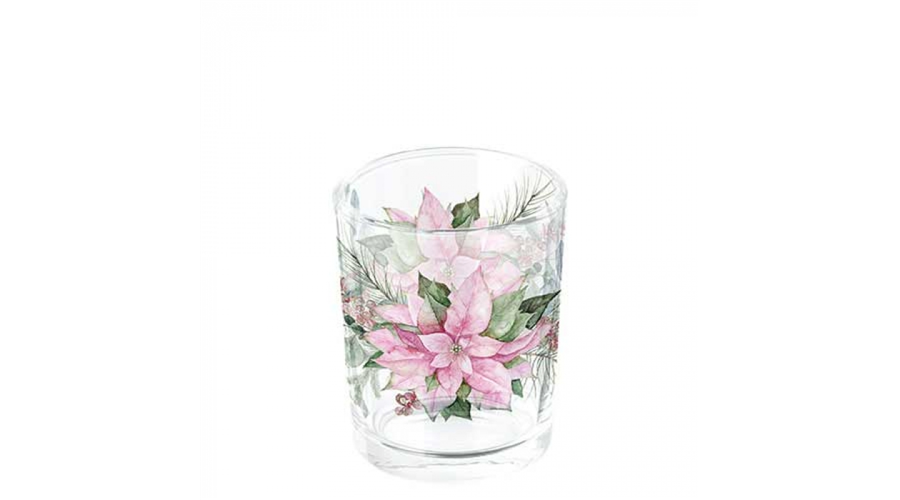 Üveg mécsestartó Pink poinsettia, 5,5x6cm