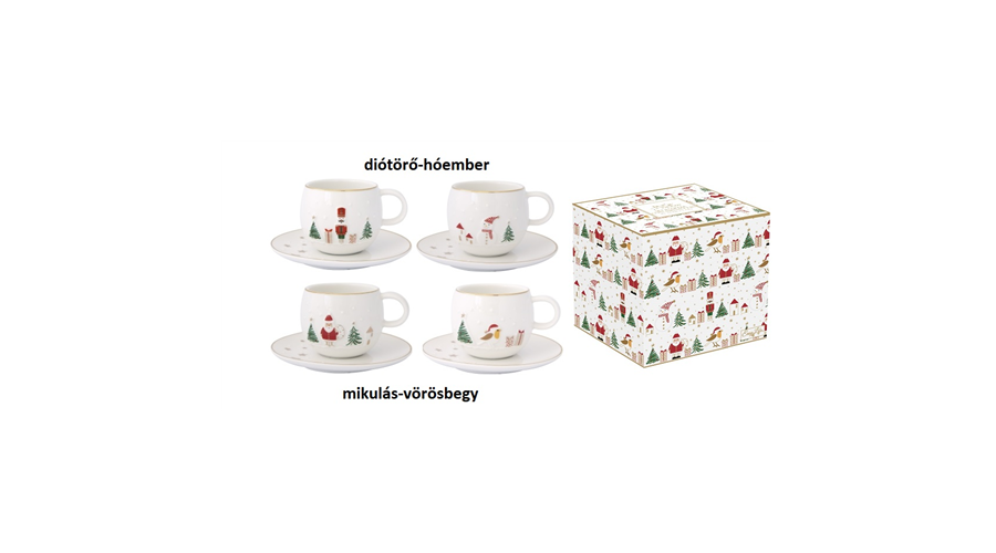 Porcelán eszpresszócsésze+alj 2 személyes, 120ml, dobozban, Let it Snow