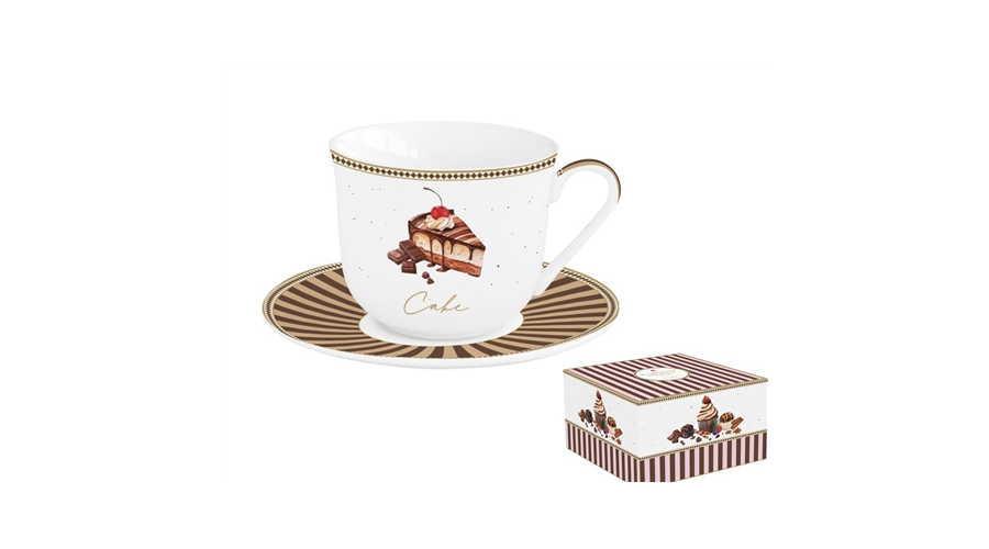 Porcelán reggelizőcsésze+alj 370ml, dobozban, Sweet Moments
