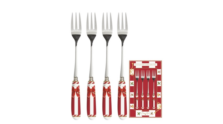 Rozsdamentes süteményes villaszett 4 db-os, porcelánnyéllel, Christmas Tale