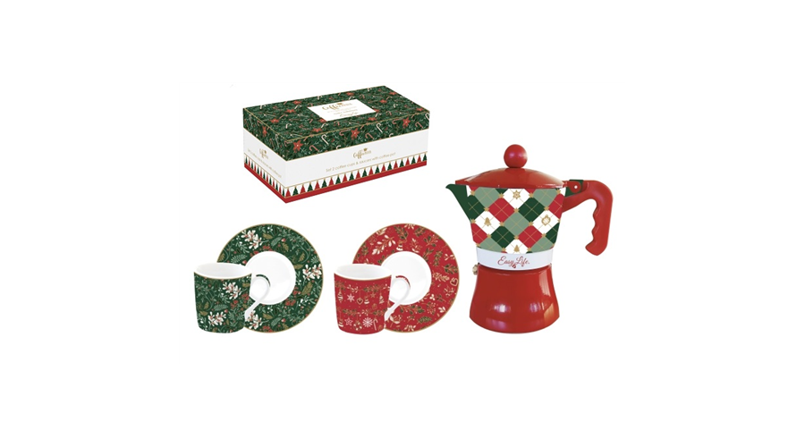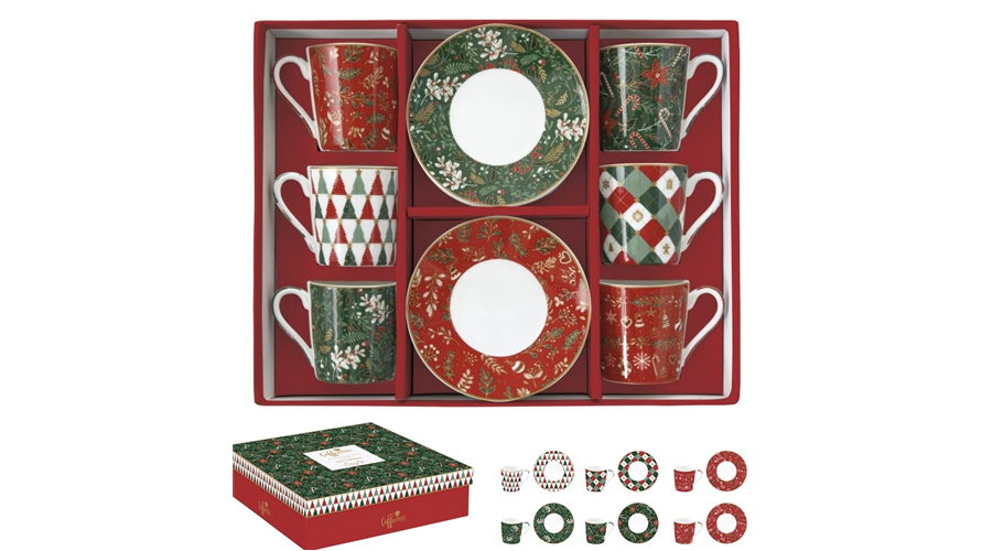 Porcelán eszpresszócsésze+alj 2 személyes, 100ml, kávéfőzővel, dobozban, Fanchy Christmas, Coffee Mania