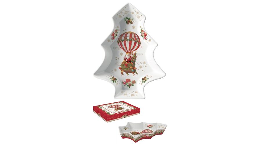 Porcelán fenyőtál 21,5×28,5cm, dobozban, Christmas Memories