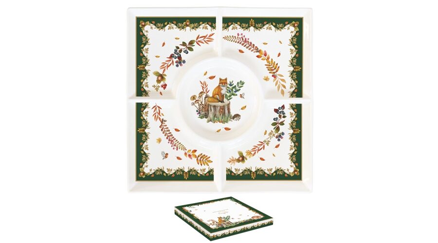 Porcelán kínálótálca 25x25cm, dobozban, Forest Dream