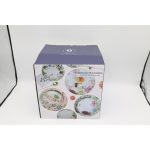 Ez a mezei virágos mintázatú porcelán étkészlet, színes kivitelben, 18 darabos szettben kapható, a lapos nagytányér átmérője 27cm. Ideális választás azok számára, akik egyedi és látványos tálalási megoldást keresnek otthoni vagy ünnepi alkalmakra.