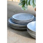 Tányér, kő, kézzel készített, zománcozott, Azulégkék, 20x20x2 cm