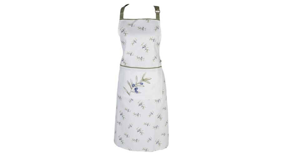 Olive Fields mintás konyhai kötény, 100% pamutból, állítható pántokkal. Stílusos és praktikus.