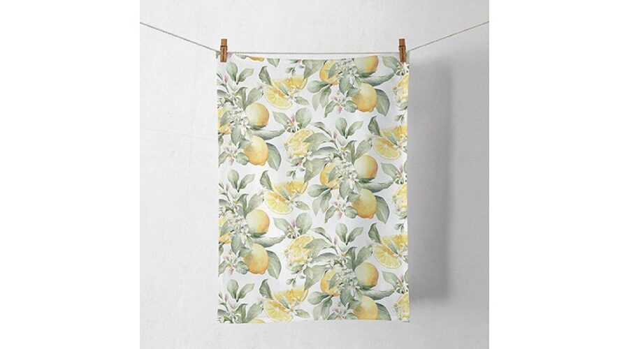 Sárga és zöld citrom mintás pamut konyharuha 50×70 cm-es méretben. Rusztikus és vintage stílusú, tavaszi és nyári hangulathoz.