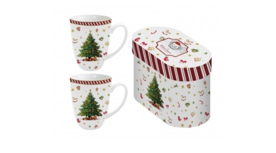 Porceláncsésze+alj, 90ml, 2 személyes, dobozban, Christmas Tree