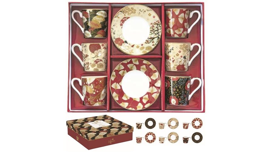Porcelán teáskanna 600ml, fémszűrővel, 2 porcelánpohárral 160ml, dobozban, Kimono, Atmosphere