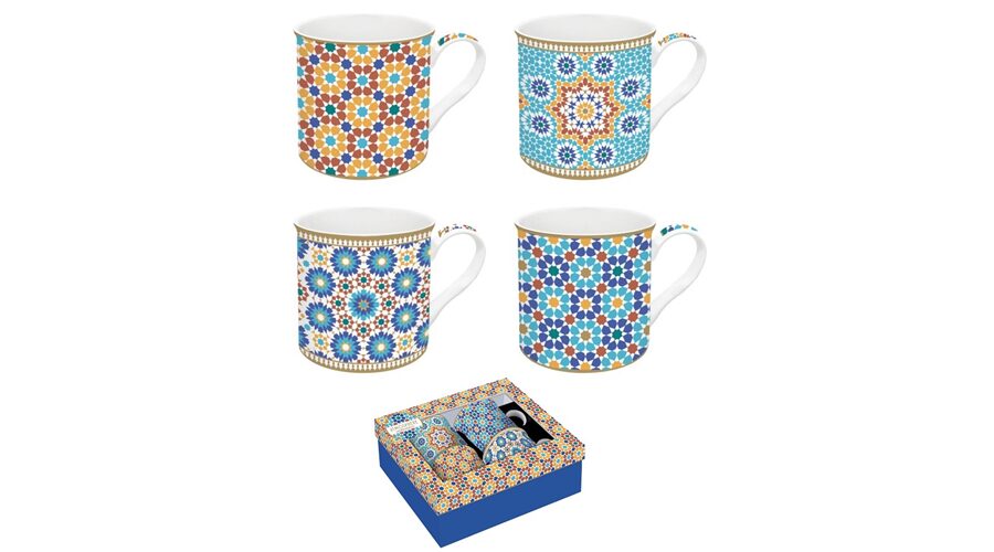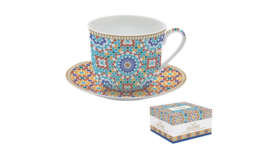 Porcelán teáskanna 600ml, fémszűrővel, 2 porcelánpohárral 160ml, dobozban, Marrakech, Atmosphere