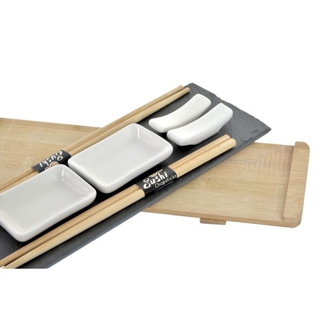 Sushi szett, pala, bambusznatúr, fehér, 30x10x3,5 cm, S/9