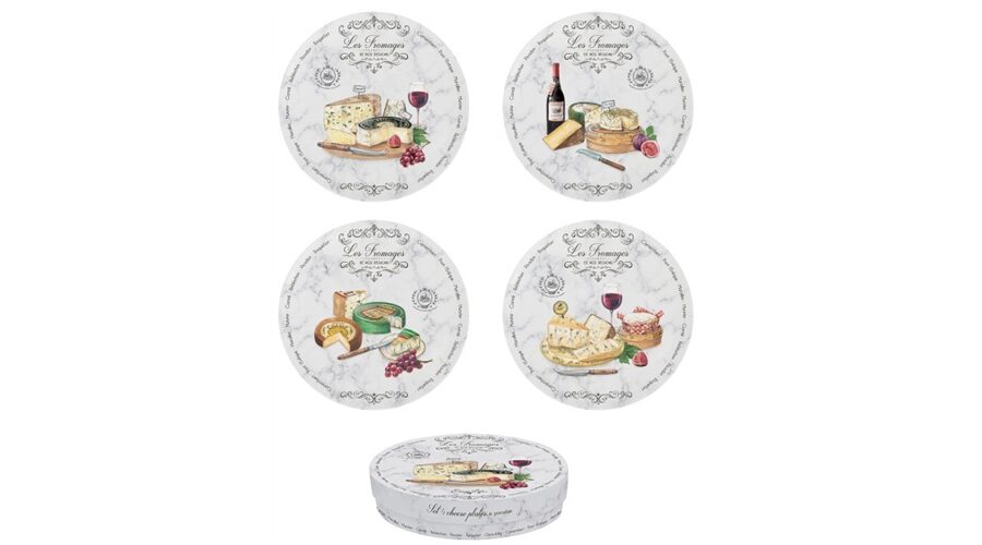 Porcelán desszerttányérszett 4db-os, 20cm, dobozban, Les Fromages