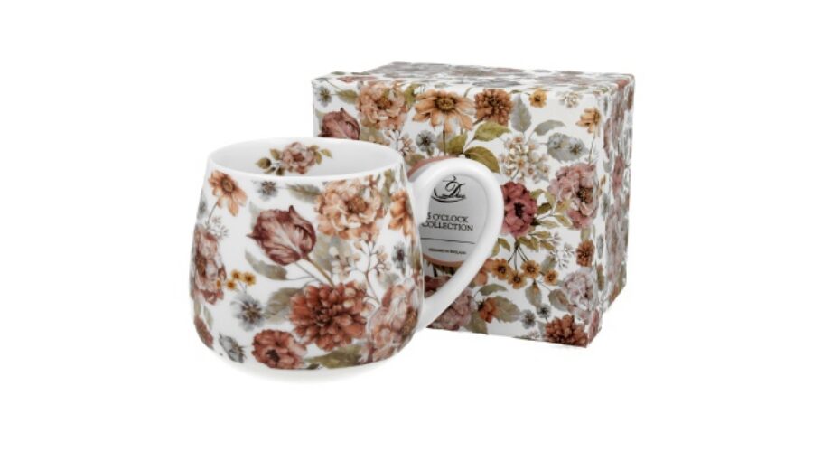• 430 ml-es porcelánbögre pasztell virágmintával, díszdobozban.