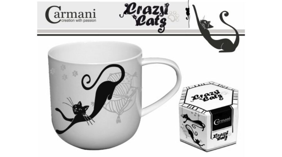 500 ml-es porcelánbögre fekve nyújtózó fekete macskával.