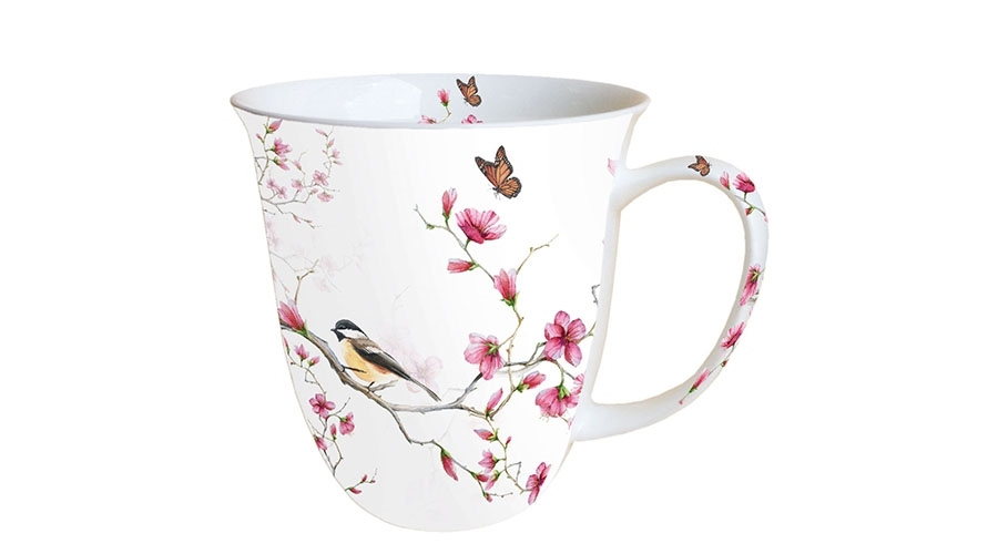 Porcelánbögre Madár & Virágzás fehér 0,4l