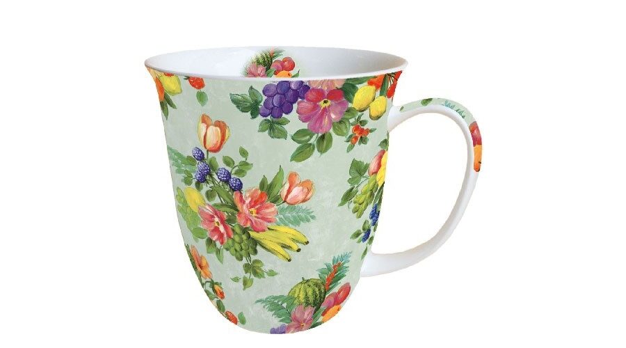 Porcelánbögre Virágok és Gyümölcsök Zöld 0,4l