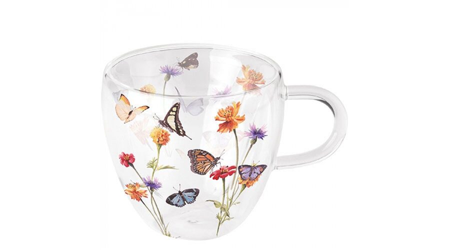 Butterfly Garden white duplafalú borosilicate üvegcsésze 0,25l