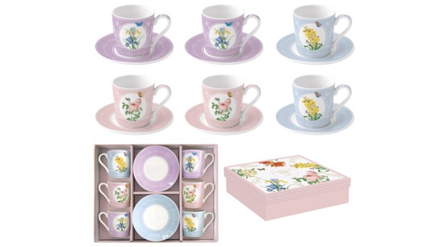 Porcelán eszpresszócsésze+alj 6 személyes, 100ml, dobozban, Coffee Mania, Royal Blossom