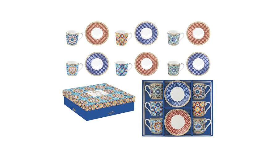 Porcelán eszpresszócsésze+alj 6 személyes 100ml dobozban, Marrakech, Coffee Mania