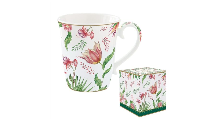 Porcelán reggelizőcsésze+alj 370ml dobozban, Botanic Chic|Ajándék nőknek