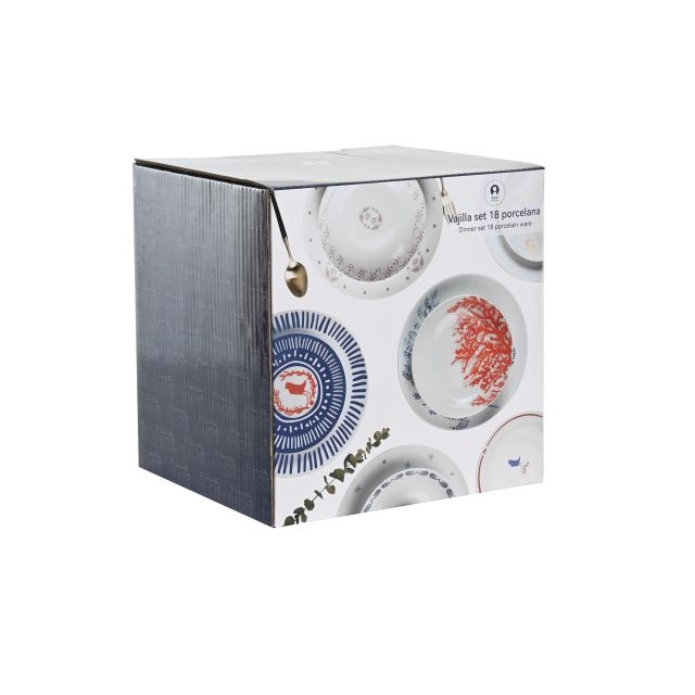 Étkészlet színes, 18 részesfehér, színes,