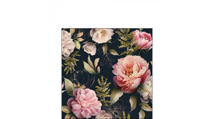 Papírszalvéta Pünkösdi Rózsa Kompozíció Fekete 25x25cm, 20db-os