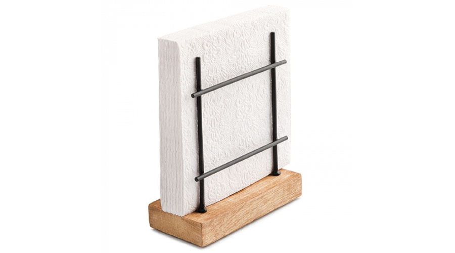 Fém szalvétatartó fa aljjal, álló szögletes, fekete