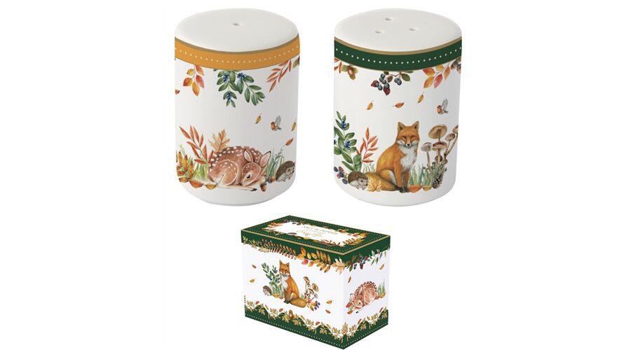 Porcelán só-borsszóró szett, 7cm, dobozban, Forest Dream