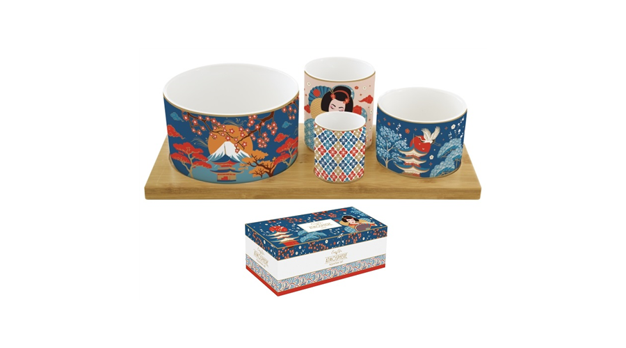 Porcelán kínálótál 4 db-os szett:11,5/8/6,5/4,5cm átmérő, bambusztálcán 29x13cm, Atmosphere, Tokyo