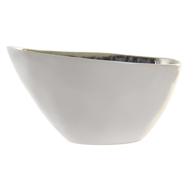 Tál, kő, kézzel készített, zománcozott, Azul oxcurofehér,kék, 16x12x9 cm