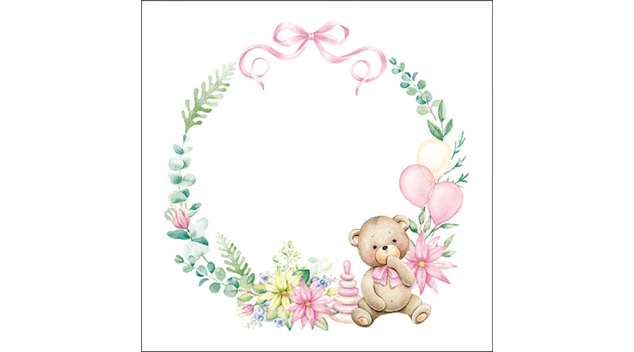 Baby teddy bear pink papírszalvéta 33x33cm, 20db-os