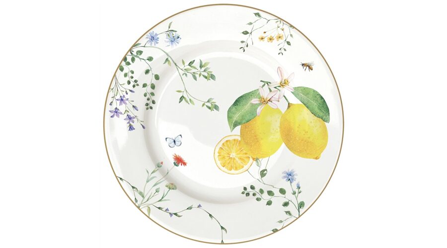 Porcelán lapostányér 26,5cm, Fleurs et Citrons