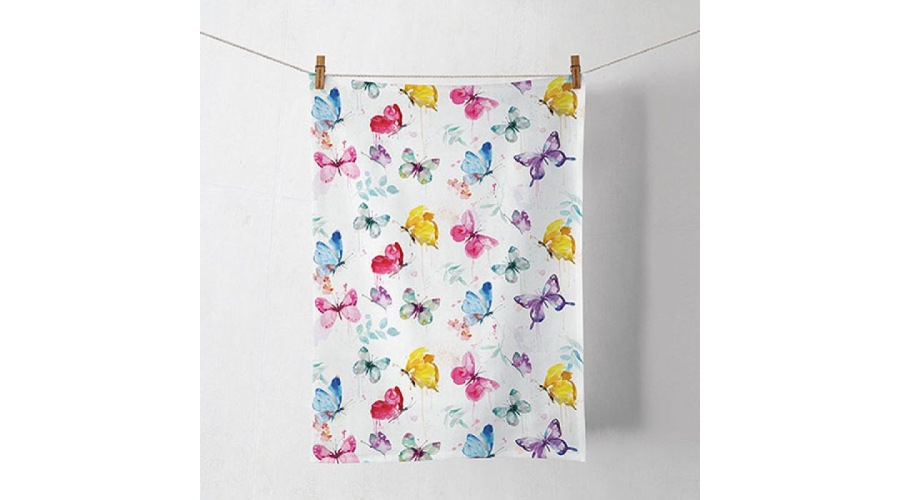 Fehér alapon pillangó mintás pamut konyharuha 50×70 cm-es méretben. Tökéletes rusztikus, vintage konyhai dekorációhoz.