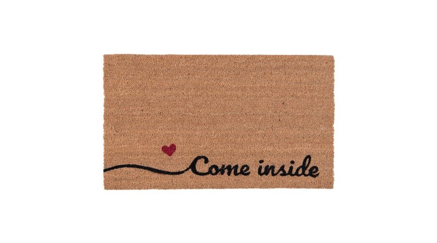 Kókusz-PVC lábtörlő „Come Inside” felirattal, 75×45 cm-es méretben.